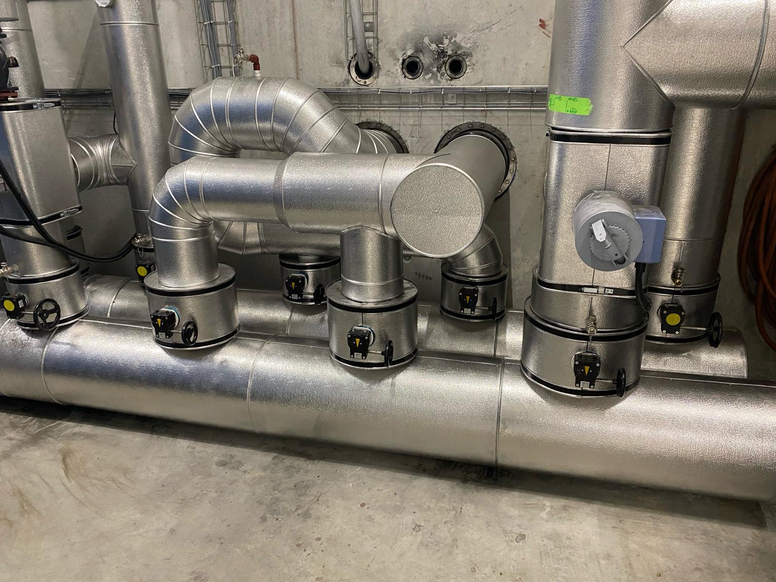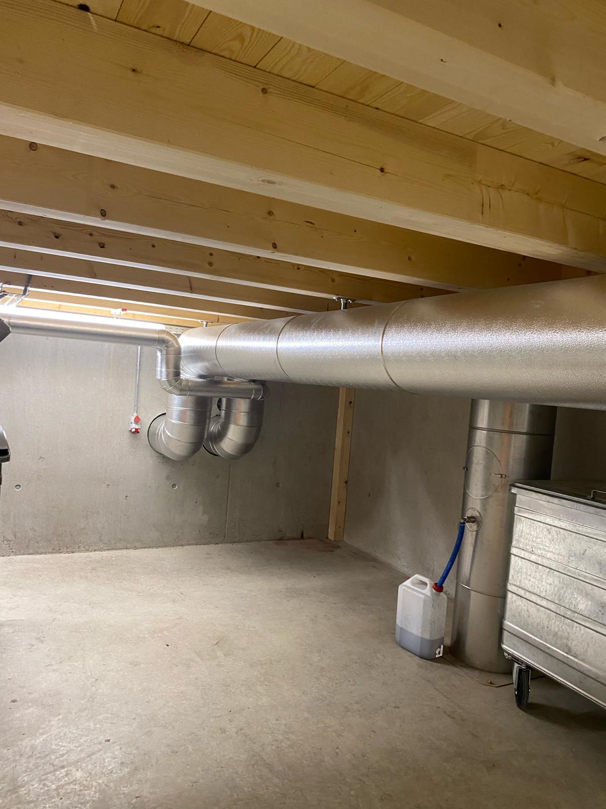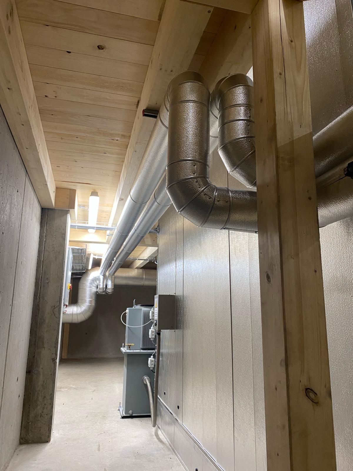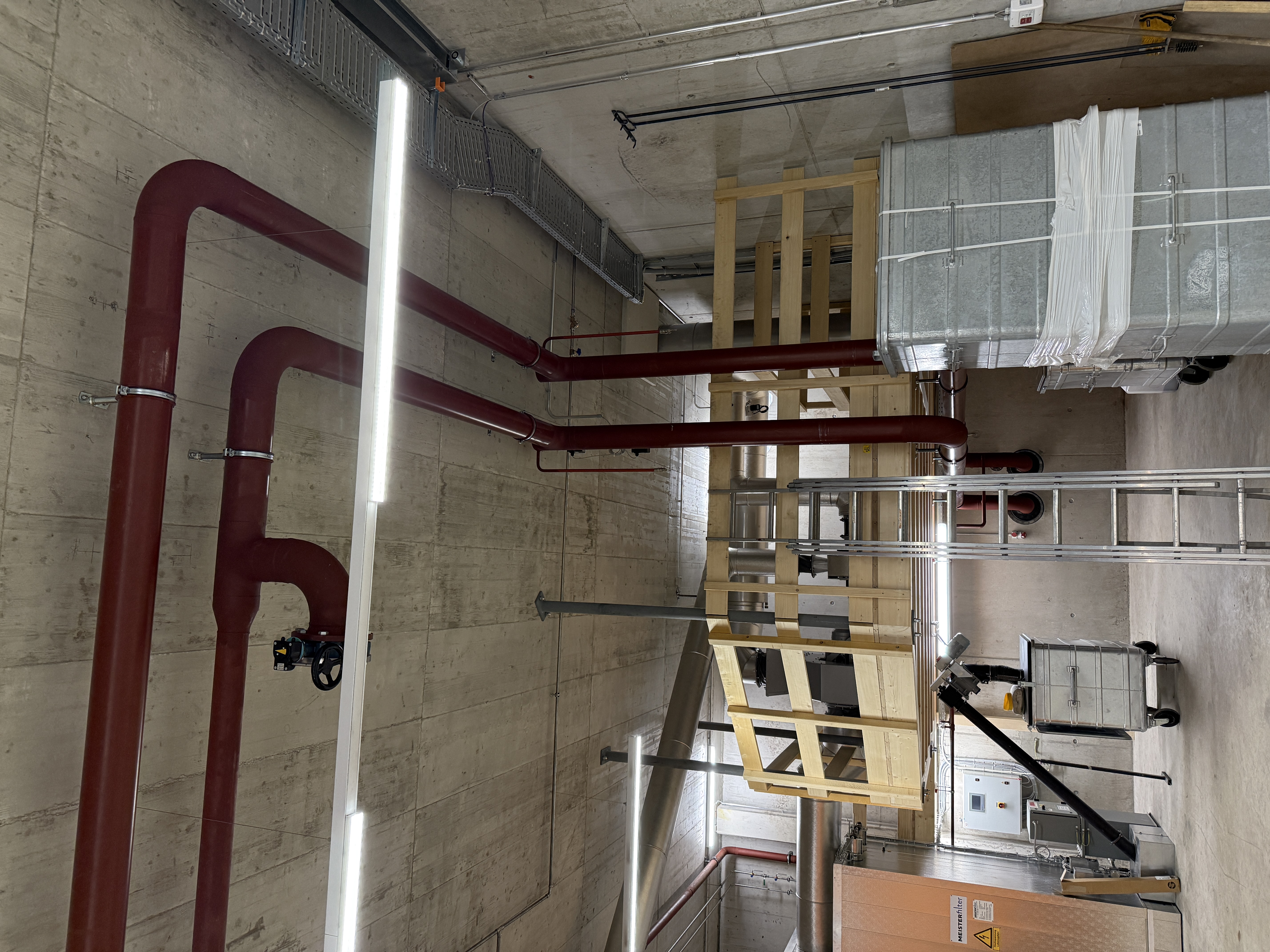 Installation und Anschluss Holz-Heizkessel für Fernwärme.